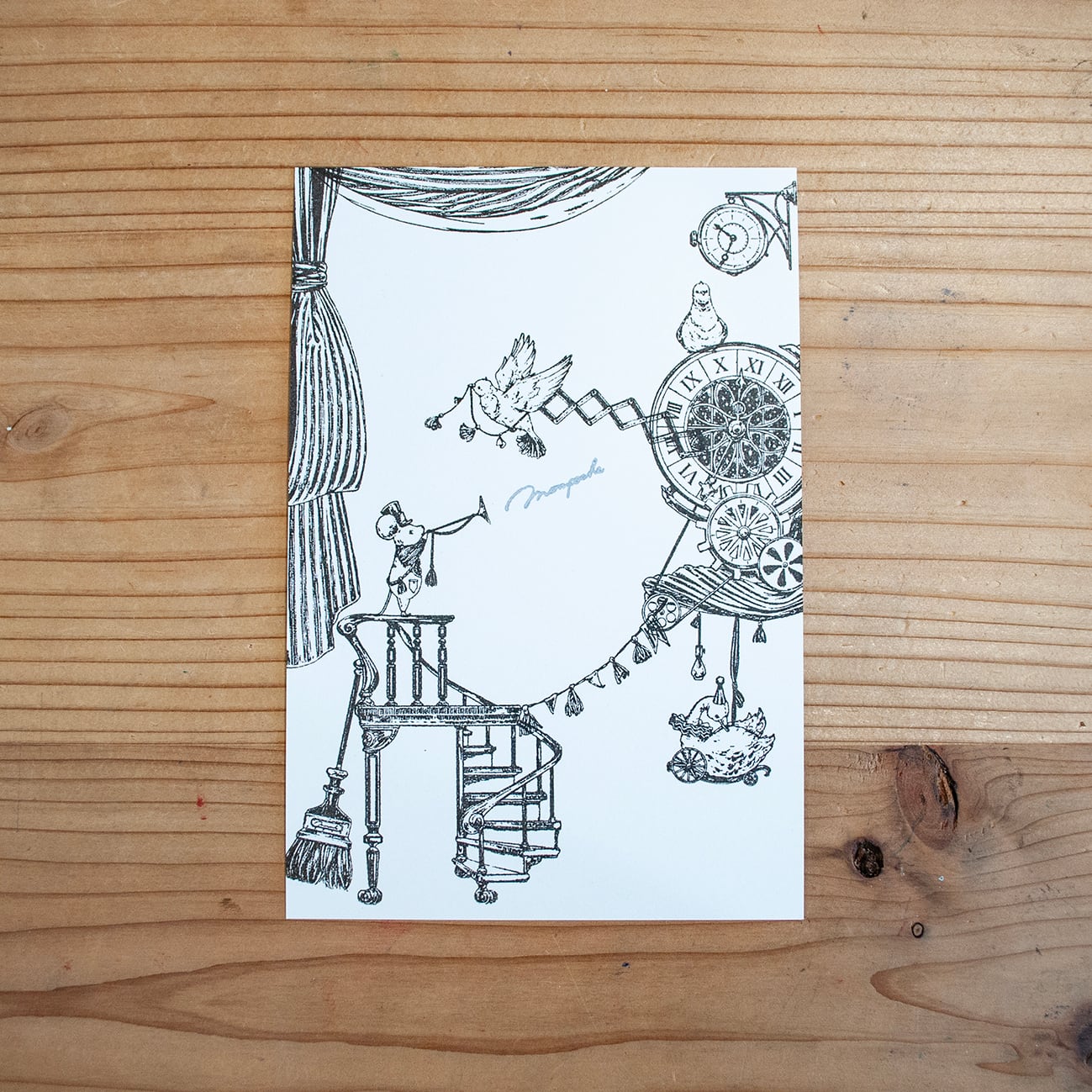 ※このシリーズは、屋根裏の薄暗い世界観を出すために、かすれた色や表情をあえて表現しております。