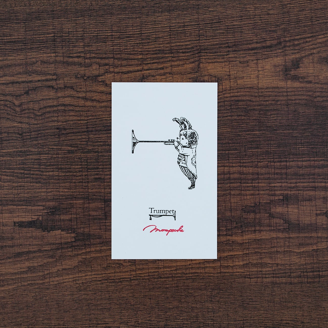 長いトランペットは、アルファベットや数字の小さなスタンプを重ねてつけると