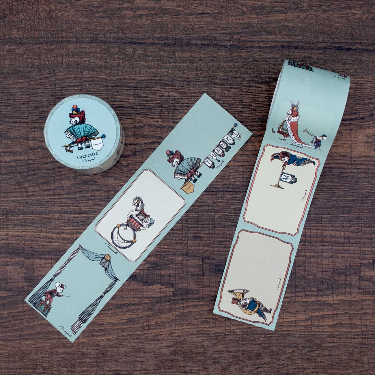 オーケストラのスタンプシリーズの仲間たちがロール付箋になっています。