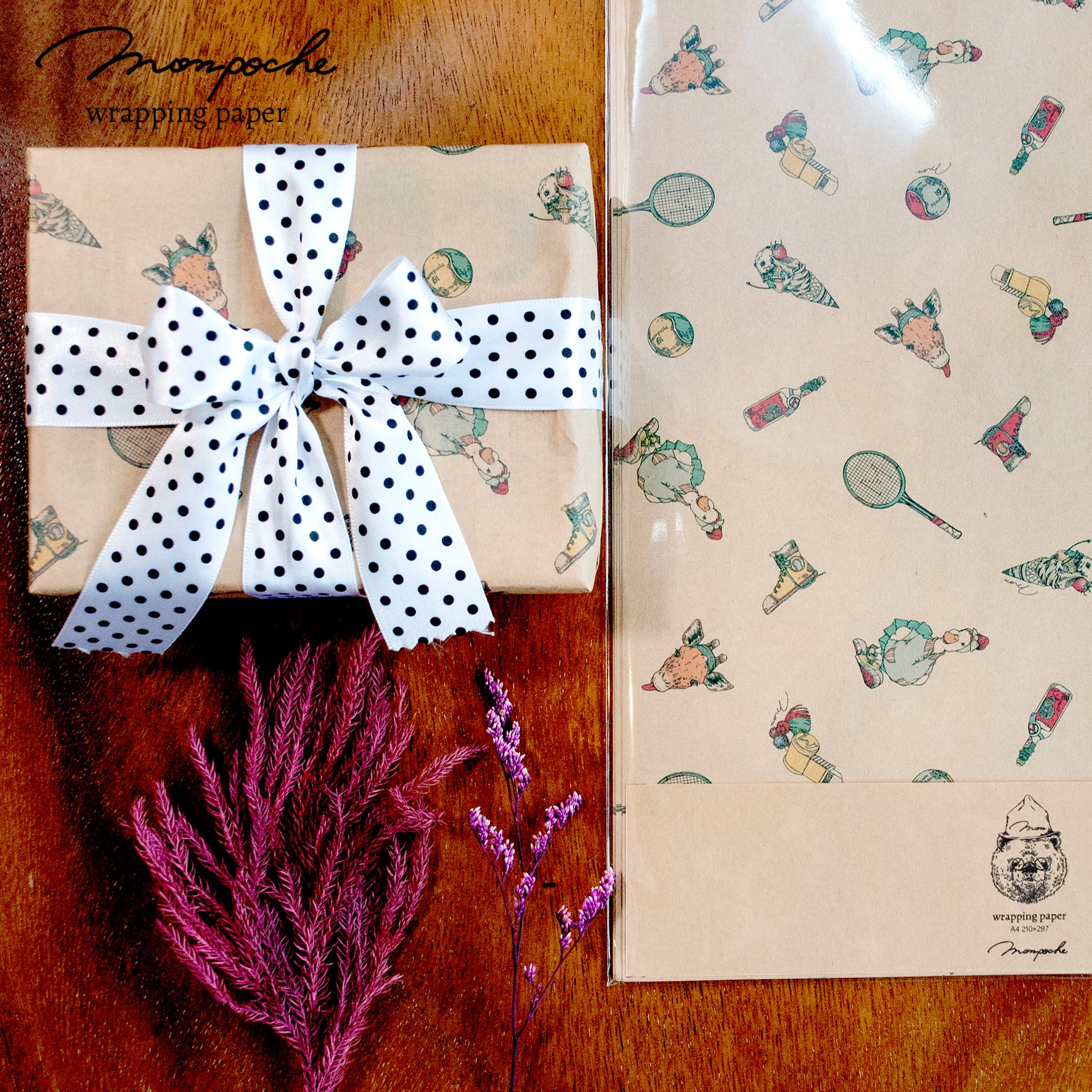 [Tennis ピンク/クラフト A4 10枚入 ラッピングペーパーW/包装紙]